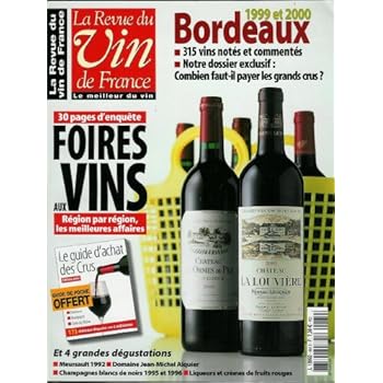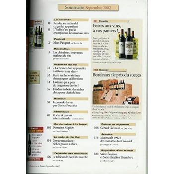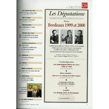 220p. ; couverture couleur, photos n&b et couleur à l'intérieur ; in-4 (29x22cm), dos carré. ARTICLES sur : Bordeaux 1999 & 2000 - Le prix des grands crus - Foires aux vins - Meursault 1992 - Domaine Jean-Michel Alquier - Champagnes blancs de noirs 1995 & 1996 - Crèmes de fuits rouges -... SOMMAIRE en photo (cliquer sur l'image pour zoomer et pouvoir lire correctement les titres).