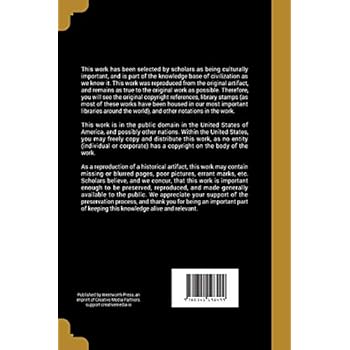 This work has been selected by scholars as being culturally important, and is part of the knowledge base of civilization as we know it. This work was reproduced from the original artifact, and remains as true to the original work as possible. Therefore, you will see the original copyright references, library stamps (as most of these works have been housed in our most important libraries around the world), and other notations in the work.This work is in the public domain in the United States of America, and possibly other nations. Within the United States, you may freely copy and distribute this work, as no entity (individual or corporate) has a copyright on the body of the work.As a reproduction of a historical artifact, this work may contain missing or blurred pages, poor pictures, errant marks, etc. Scholars believe, and we concur, that this work is important enough to be preserved, reproduced, and made generally available to the public. We appreciate your support of the preservation process, and thank you for being an important part of keeping this knowledge alive and relevant.