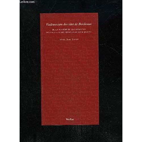VADEMECUM DES VINS DE BORDEAUX DE LA MANIERE DE LES APPRECIER DES CAUSES ET DES ORIGINES DE LEUR QUALITE Details